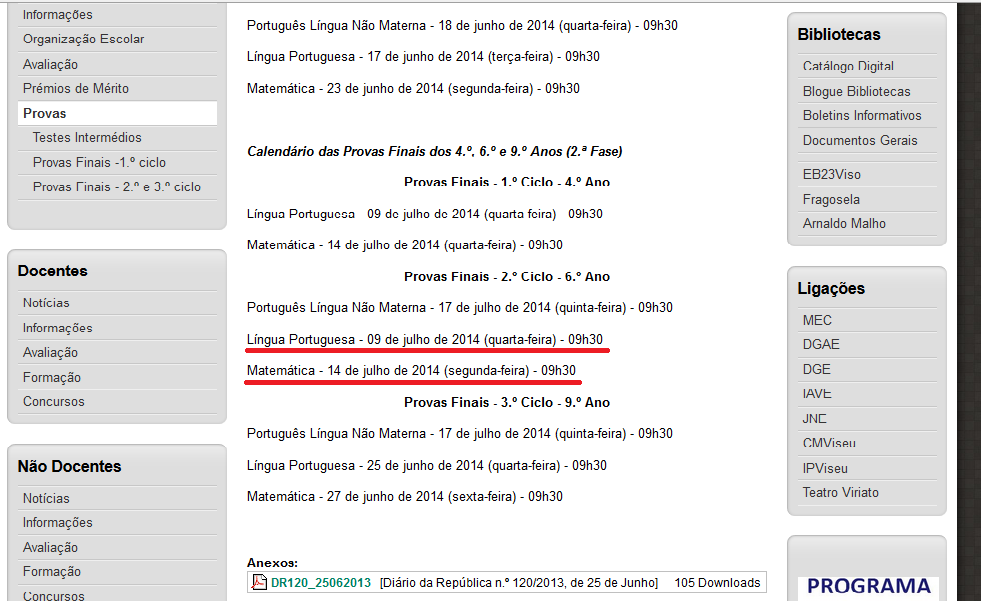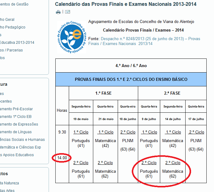 O calendário das provas finais dos 1.º e 2º ciclos do Ensino Básico publicado pelo Ministério da Educação há quase um ano, tem dado azo a todo o tipo de interpretações. Há escolas que consideram que na 2ª fase as Provas Finais de 6º ano de Português e Matemática se irão realizar às 9:30 da manhã (ou às 8:30 se for nos Açores) enquanto que outras escolas consideram que serão às 14:00 horas. Como as provas têm de decorrer no país inteiro à mesma hora, vai ser bonito de ver quais foram as escolas que interpretaram corretamente o obtuso calendário de provas do MEC.