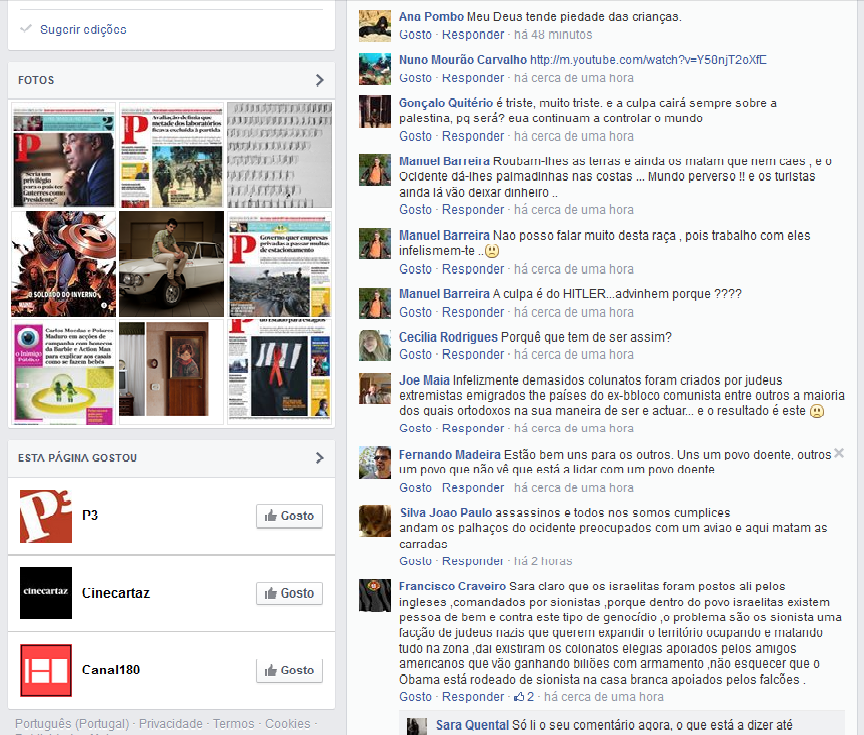 Um pequeno exemplo do que se passa nas caixas de comentários do Jornal Al-Público: uns suspiram por Hitler, outros destilam ódio
